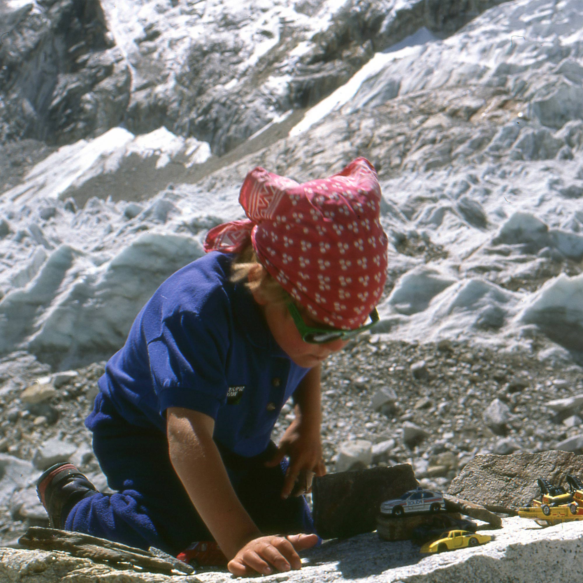 Tom and his family spent a lot of time in the mountains supporting Alison throughout her career. He is pictured playing with toy cars at Everest Basecamp as a child. Alison and Tom, his father, wanted their children to grow up and have an adventurours life. After Alison passed, the family continued to spend time in the mountains, packing up their life in the UK and moving to Europe in 2009.