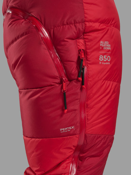 Expedition specific down salopettes for extreme environments