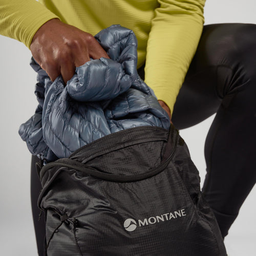 Montane logo and additional branded reflective detailing. Integrated bungee for external storage or compression