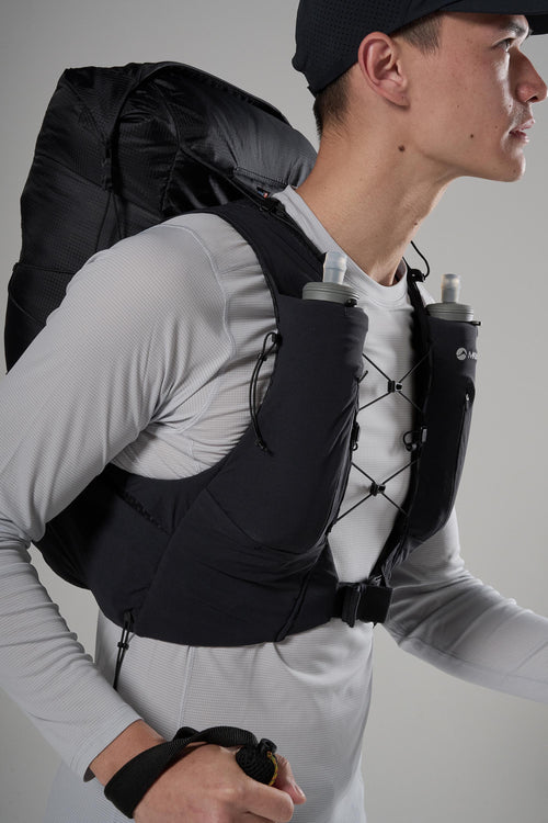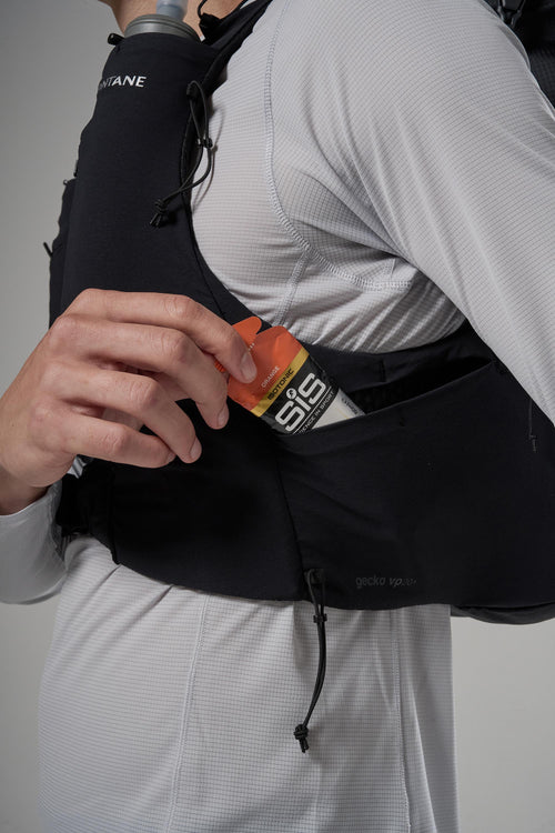 Multiple harness pockets for on-the-go access to kit, food and liquid