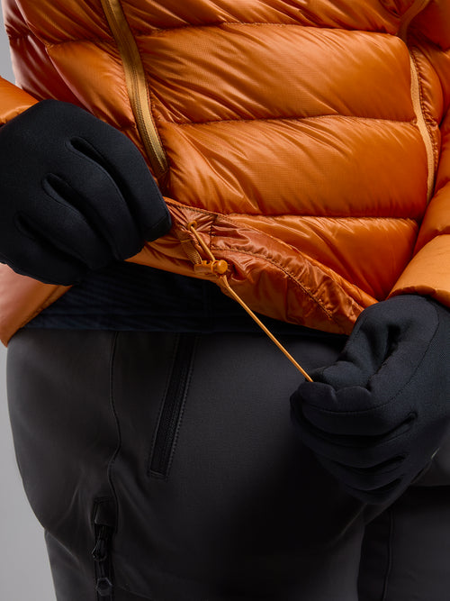 The fill power measurement in down tells us how much loft and strength the down clusters have, and therefore how much air (and warmth) they can trap. With a 850+ fill power the down utilised in the Alpine 850 Lite provides exceptional warmth for the weight, utilising larger down clusters that are capable of trapping more air. This high fill power means the Alpine 850 Lite provides greater warmth compared to other jackets of the same weight, making it the perfect choice for when maximum insulation at minimal weight is essential.