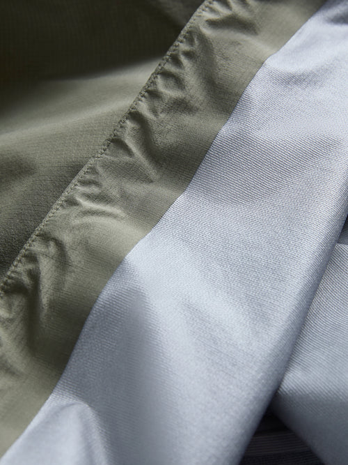 The Cetus Lite Jacket has been built using offset seams. Instead of lining different seams up to where they meet on the garment, offsetting them enables us reduces the number of seams needed during construction, along with its weight, while extending the lifespan of the jacket. This is one of the reasons why the more durable 3-layer construction remains lightweight. Seams are further reduced by having the peak, hem and cuff tabs laminated, a process that also strengthens those areas.