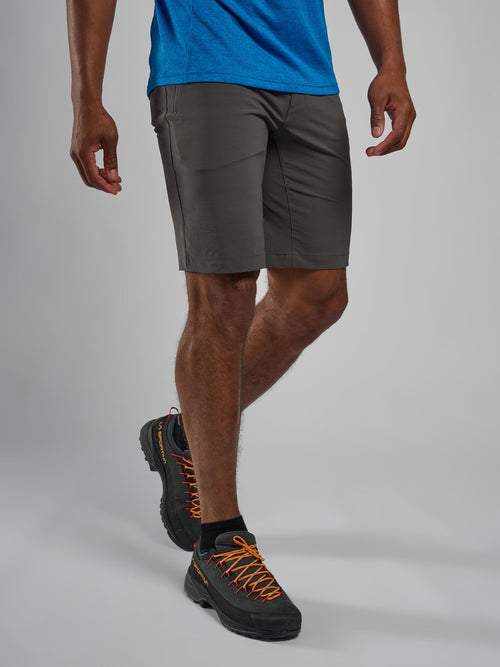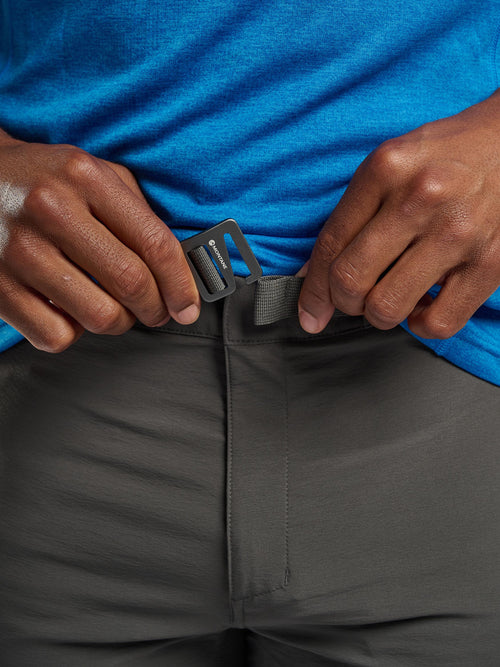 The Montane Men's Dynamic Lite Shorts are slim fitting shorts designed with a four way stretch fabric with a zipped fly, snap press closure fastening and integrated belt; which keeps these shorts in place while you’re on the move. Constructed with Raptor Flex fabric which is abrasion resistant and has the environmental benefits of PFC free DWR. The Dynamic Lite Shorts are incredibly durable providing excellent freedom of movement great for trekking and rock climbing alike.