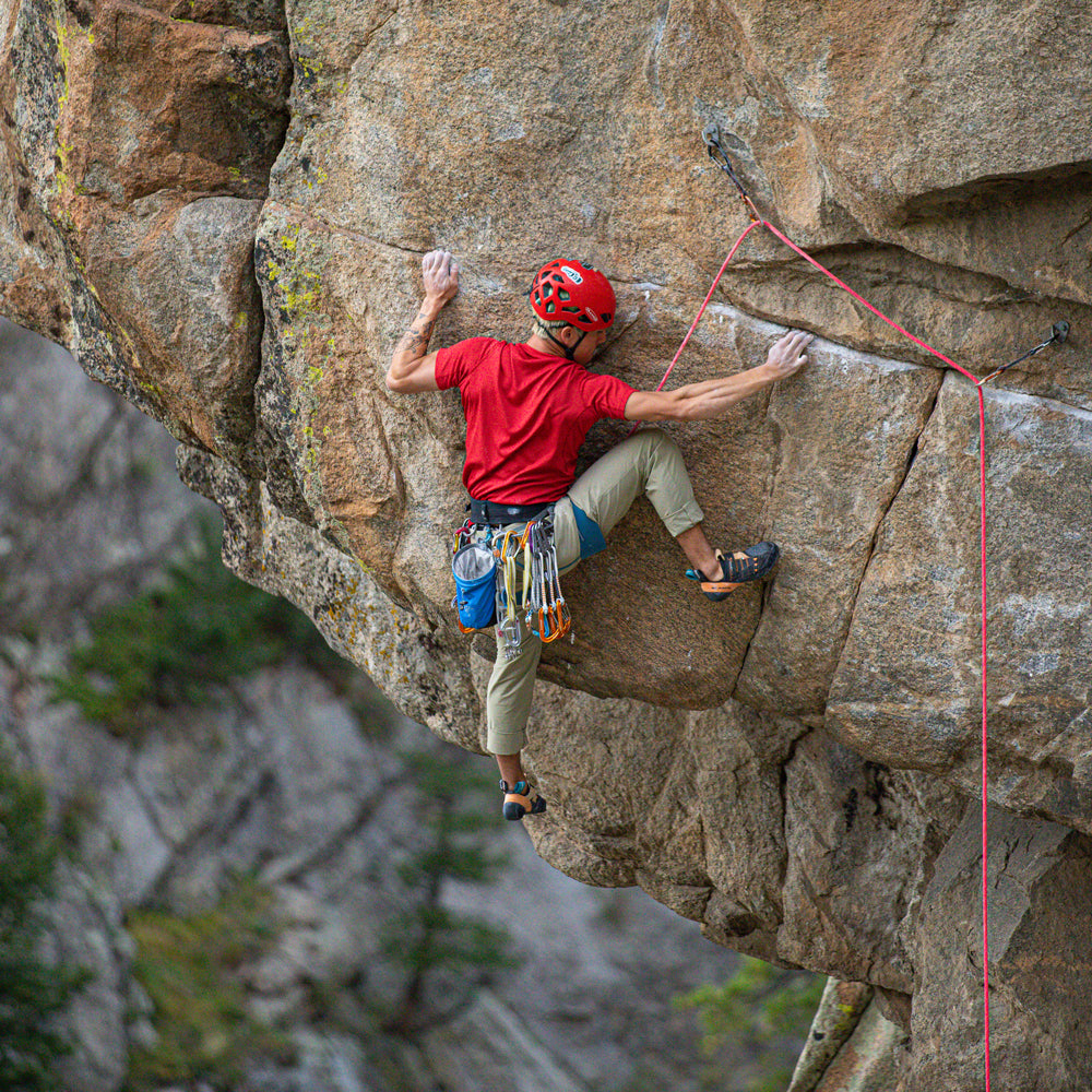 A 4-way stretch plain weave ensures these men’s trousers are incredibly stretchy, providing enhanced freedom of movement. This fabric is also highly abrasion-resistant, which makes them robust and durable, ideal for activities such as climbing where you are in close contact with harsh terrain.