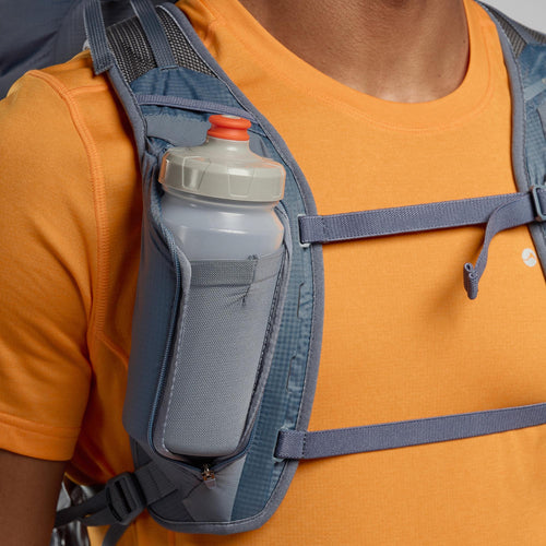 Shoulder strap pockets with a mesh gusset to fit both soft flasks and hard bottles