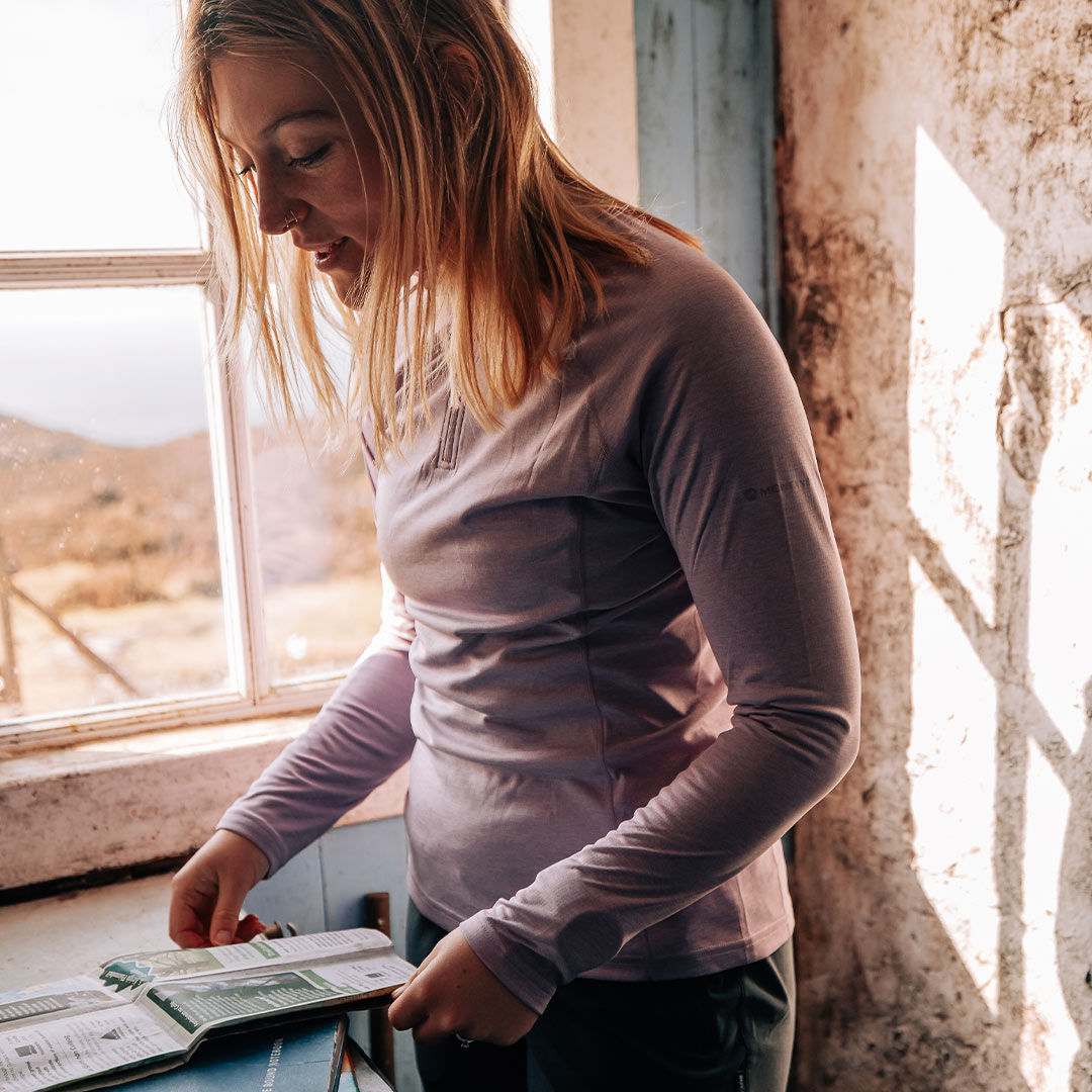 Mulberry Montane Women's Dart Zip Neck T-Shirt Model Back