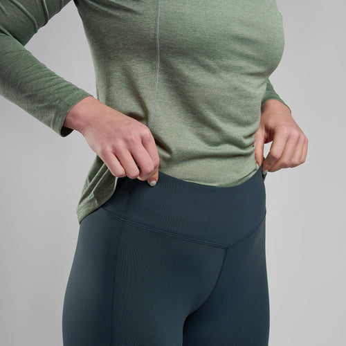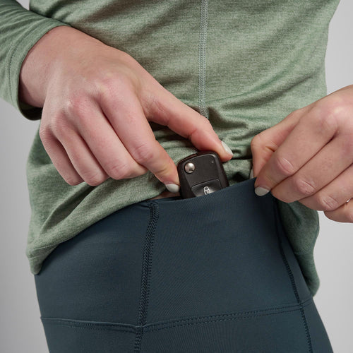 The Montane Women's Ineo Lite Legging Pants have been designed with a flattering next to skin silhouette with a deep stretch waist band using a super stretchy fabric which includes concealed waistband pockets and a thigh pocket ideal for snacks or a mobile phone. Constructed from a Mala Lisson stretch fabric with POLYGIENE® permanent odour control that offers comfort and freedom of movement which enhances mobility.