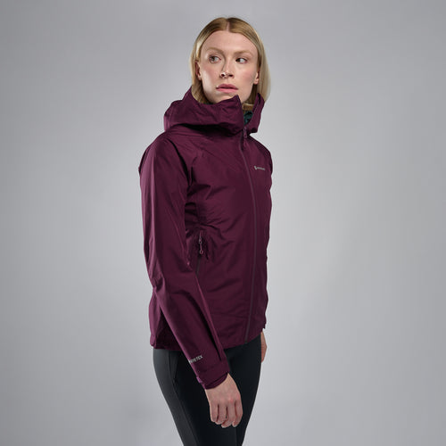 The Montane Women’s Spirit Waterproof Jacket is a lightweight, durable raincoat which has been designed to provide weather protection in rain and heavy showers. Designed with a soft hand feel with a fully seamed tape construction; adjustable hood with stiffened peak, full zip fastening with internal storm flap, adjustable hem and cinchable drawcord and GORE-TEX membrane to keep you dry. Balancing weather protection and comfort with functionality it makes a good versatile lightweight waterproof option; an ideal kit companion because it can be easily stashed away in your pack ready for when the weather changes.