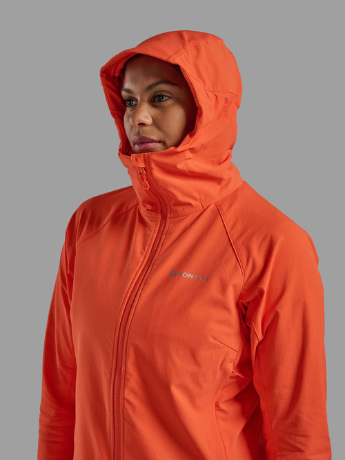 Constructed from GRANITE Stretch fabric, a stretch double weave textile that's coated in fluorocarbon-free DWR, this softshell jacket provides exceptional wind resistance and water repellency. Its adjustable hood and hem offer a customisable fit, giving you optimal protection and ventilation in any weather conditions.
