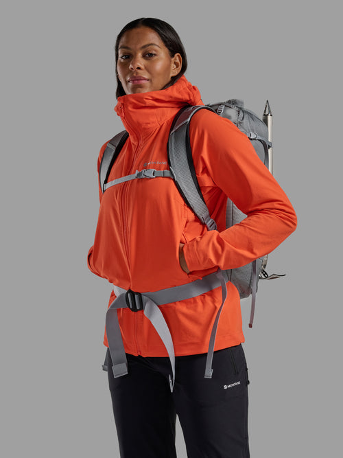 Designed to move with you, the jacket features offset, minimal seams and double harness, pack compatible pockets for effortless storage and unrestricted movement. It’s the ideal choice for technical hikes and climbing adventures.