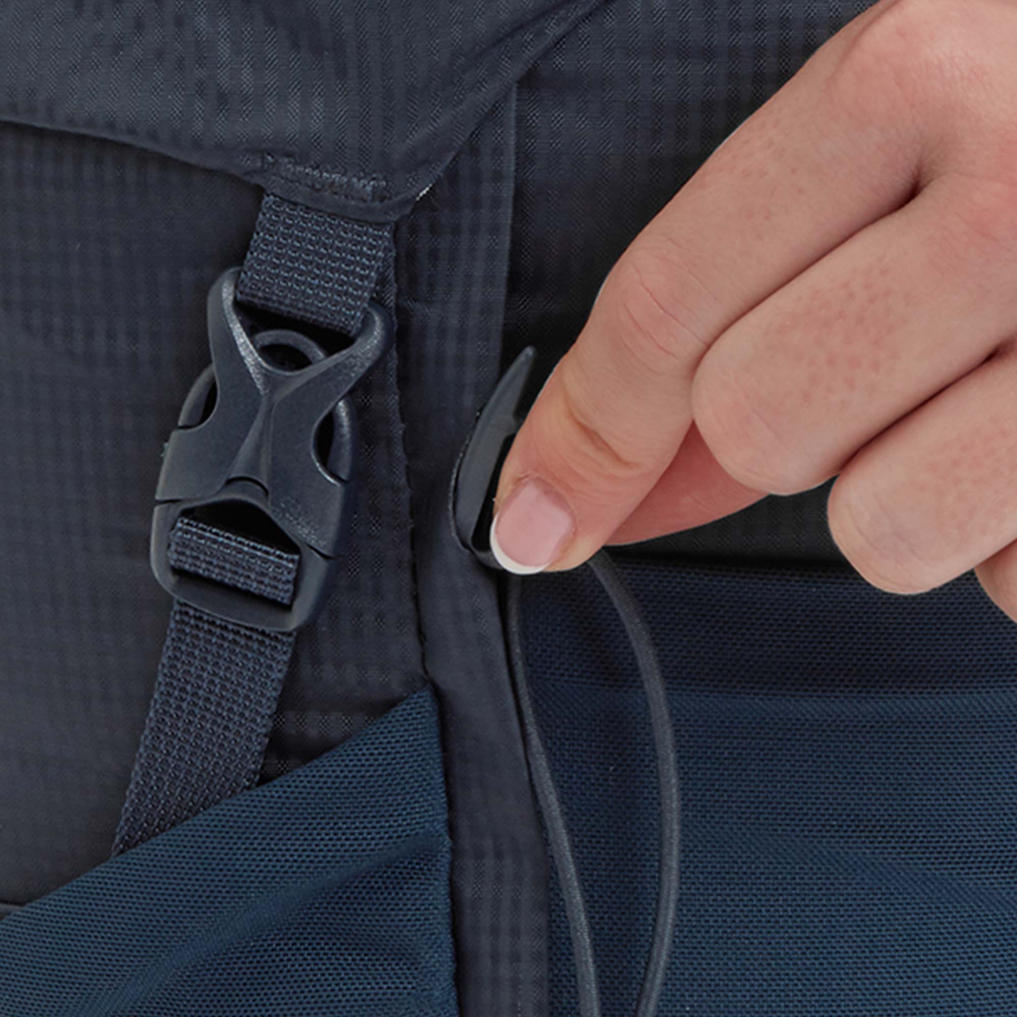 Shoulder strap pockets with a mesh gusset to fit both soft flasks and hard bottles.